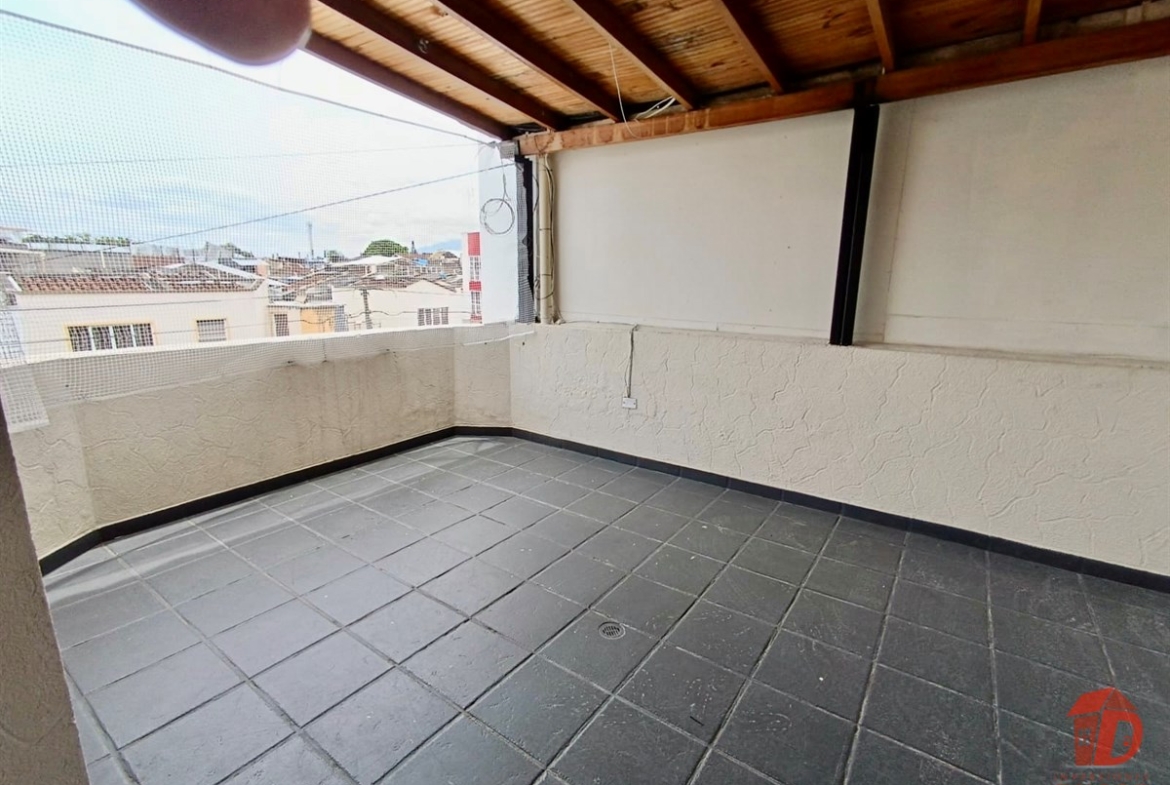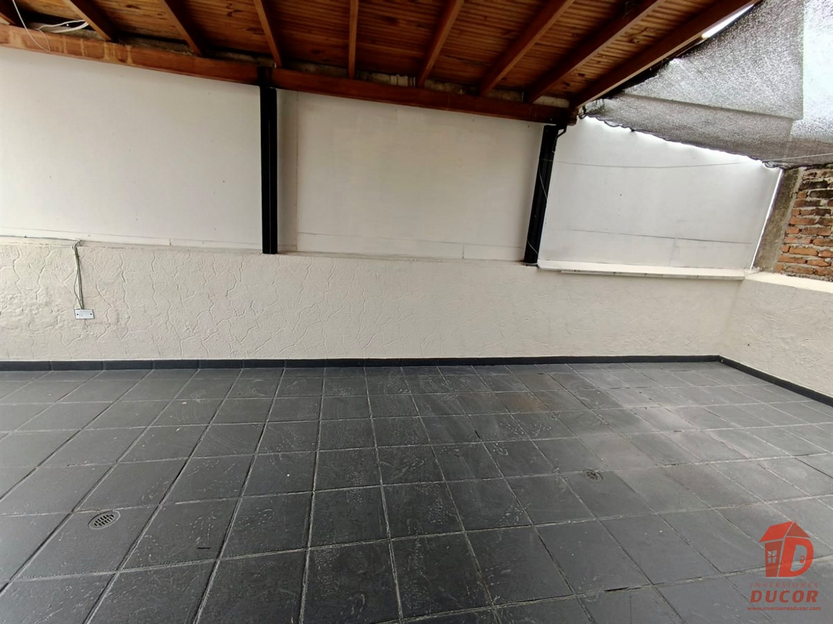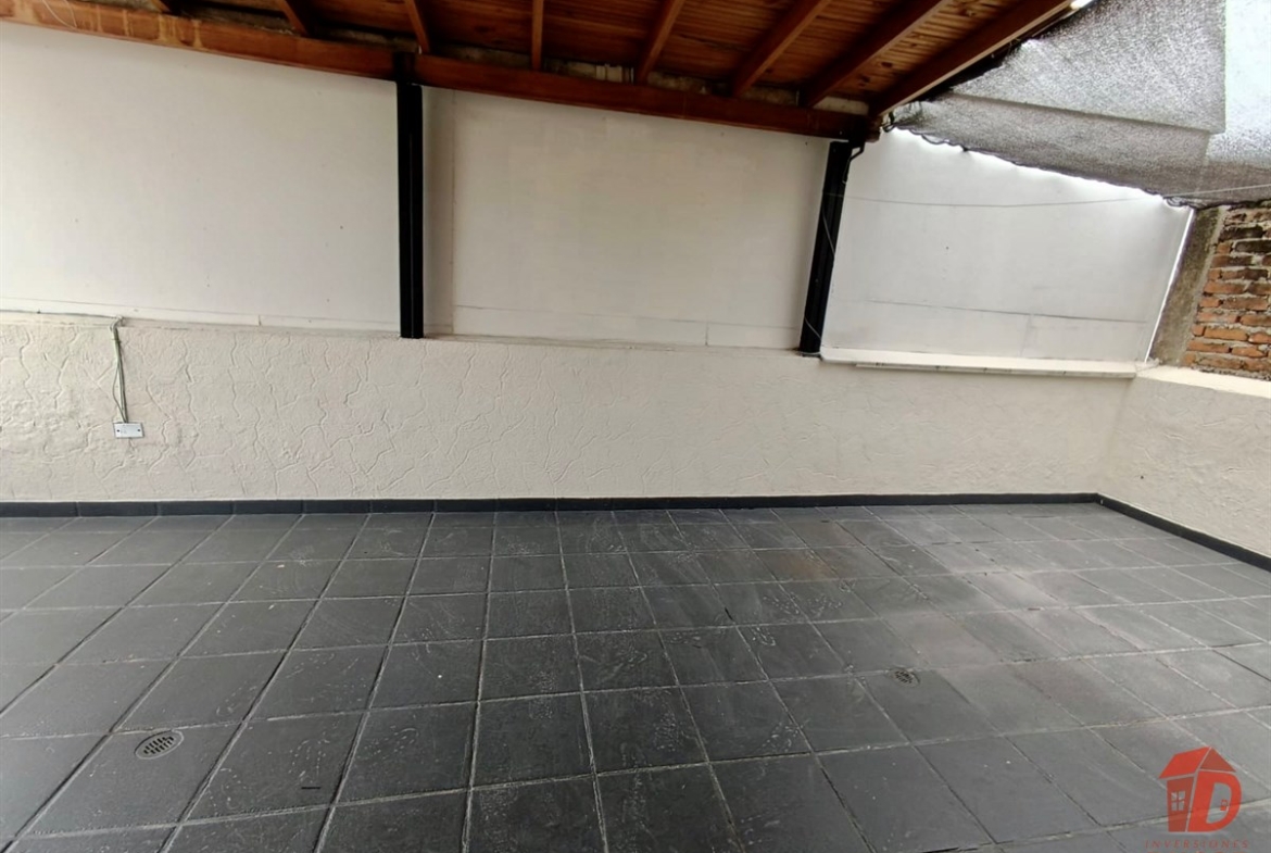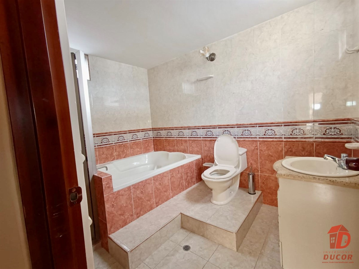 Habitación con closet y baño con ducha y tina. Terraza pequeña.